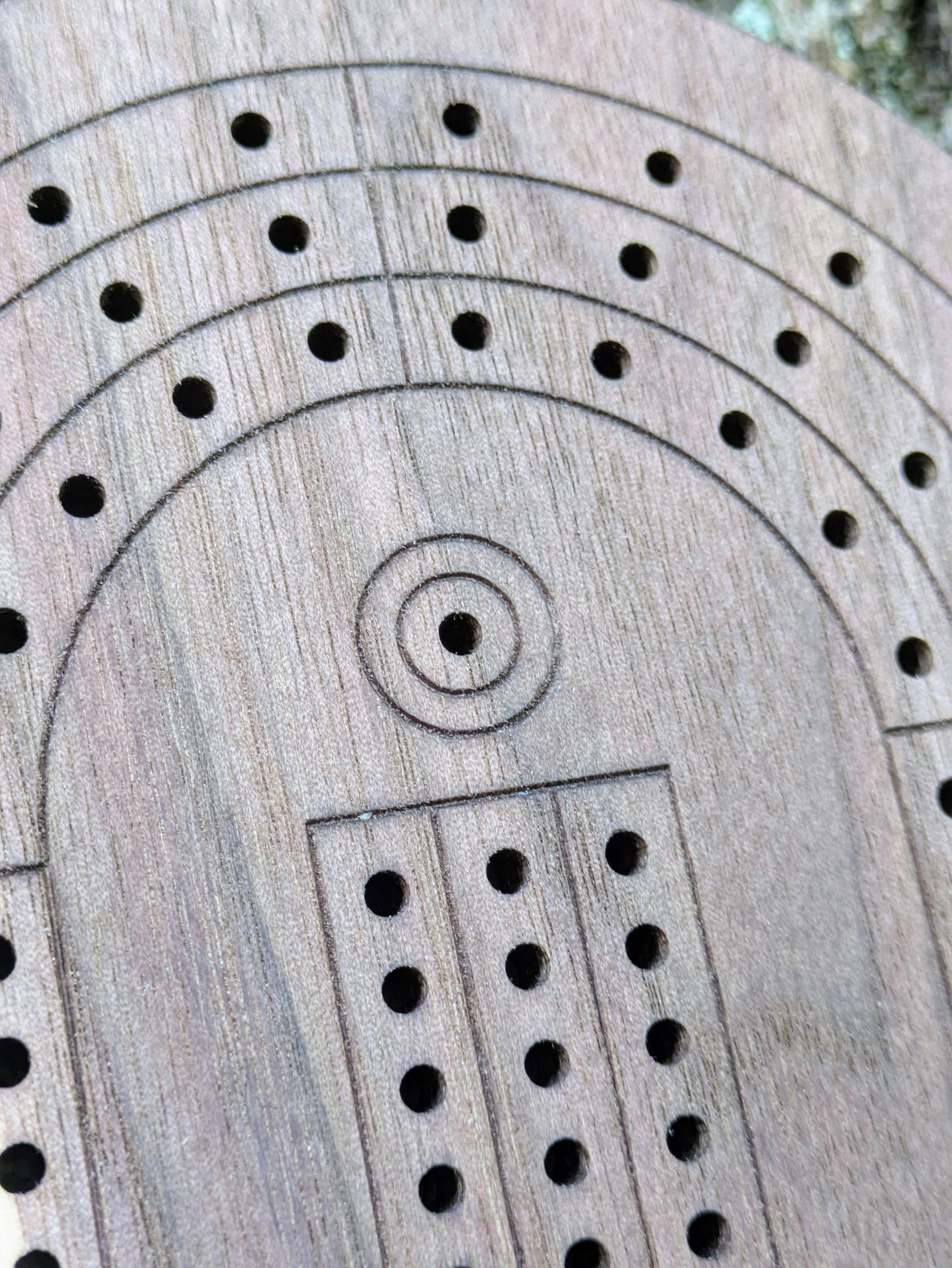 A classic, heirloom-quality 3 track cribbage board in black walnut.
